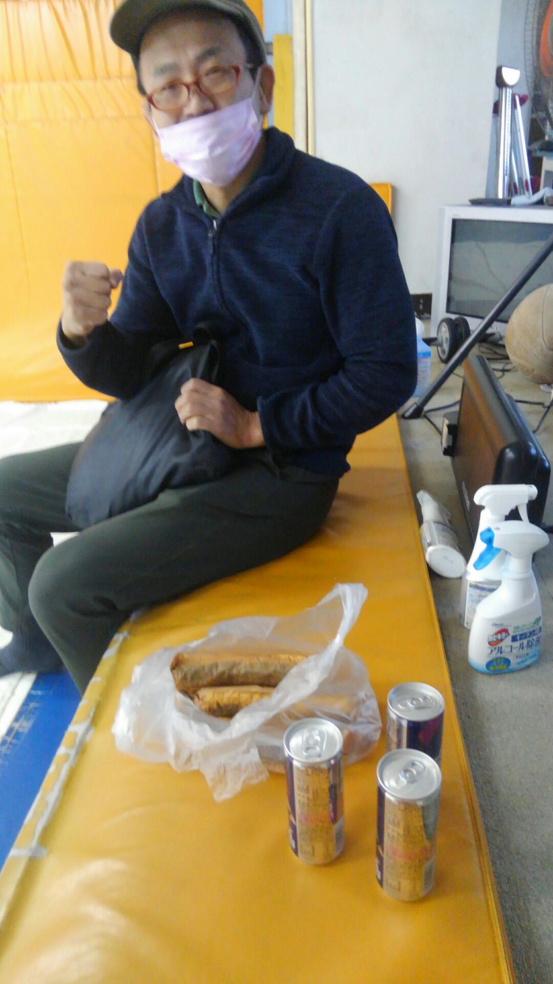 最年長の沢辺さんは遅くまで筋トレやり熱心です。